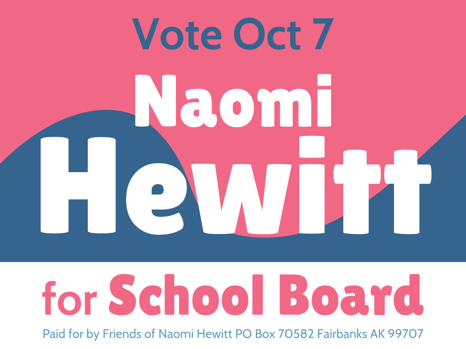 Paid for by the Friends of Naomi Hewitt PO Box 70582 Fairbanks AK 99707